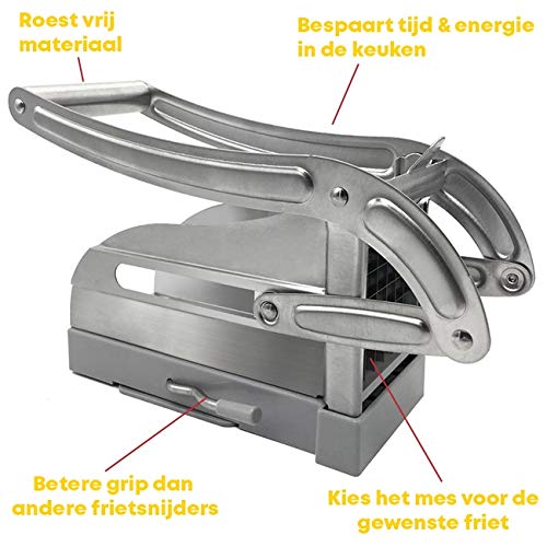 Specificaties: DeLux Patatsnijder en Frietsnijder Roestvrijstaal met Gratis 3-in-1 Aardappel Schiller – Uniek Tafel Bevestiging Model – Fritessnijder Inclusief 2 Messenrasters en Recepten Brochure