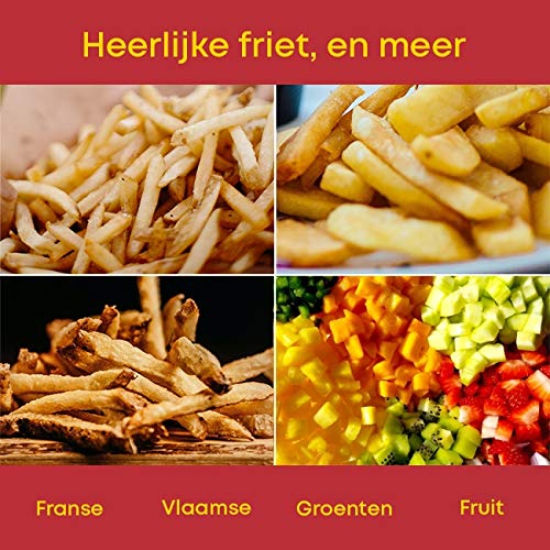 Heerlijke patat of zelf friet maken Friet wie eet het niet? Ook jij kan compleet van begin tot eind zelf verse friet maken: Te beginnen met de aardappels; Koop de vastkokende variant en ga deze schillen. Afhankelijk van de friet soort die je wilt maken kies je het bijbehorende messen raster, zet de patat achter de snijder en druk het (met de hendel) door het messen raster. Doe dit tot je de genoeg friet hebt voor iedereen die mee moet eten.