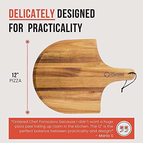Chef Pomodoro Pizzapad 30 cm, Acacia Pizza Paddle en Pizza Peel voor het bakken van zelfgemaakte pizza en brood, houten pizzaschel, pizzaoven accessoires