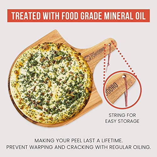 TAPERED EDGE: het strakke ontwerp van onze luxe houten pizzapeddle maakt het mogelijk om te gebruiken in alle bak- en kooksituaties: breng ongekookt pizzadeeg, gekookte pizza en zelfgebakken brood, gebak met gemak in en uit de oven, pan of buiten houtskoolgrill over.