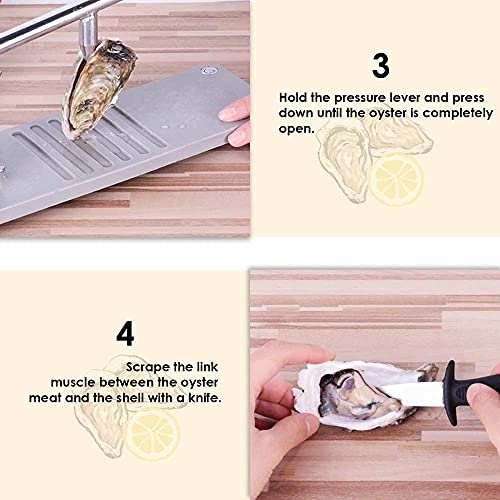 Efficiënt + eenvoudig te bedienen: deze machine is bekwaam in het gebruik van mechanica, waardoor de lengte van de meshandgreep toeneemt en de weerstand wordt verminderd. De staaf is gemakkelijk in te drukken en kan snel de oester openen. U hoeft alleen maar de oester in een geschikte positie te plaatsen en op het handvat naar beneden te drukken om te voltooien. Het kan op elke desktopmachine worden bediend om de oester stabieler te maken.