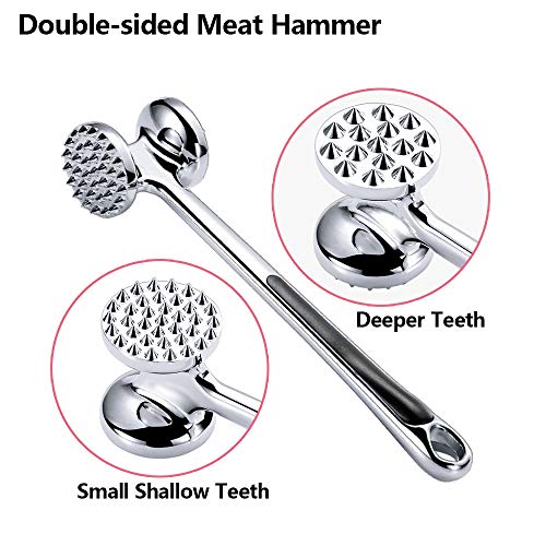 【Dual Side Design】Het hoofd van de vleestenderizer wordt gewogen, de ene kant heeft diepere tanden, terwijl de andere kant kleinere ondiepere tanden heeft voor verschillende malen behoefte. Het maken van de vleestenderizer hamer effectiever en gemakkelijker.