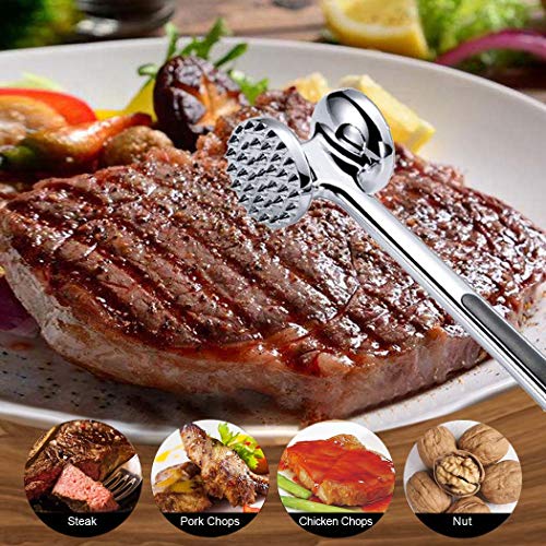 ALEENFOON Professionele handmatige vleeshamer roestvrij staal heavy duty dubbelzijdige vleeshamer met ophanggat
