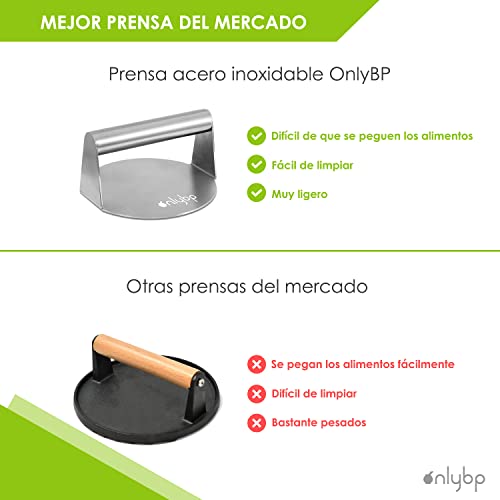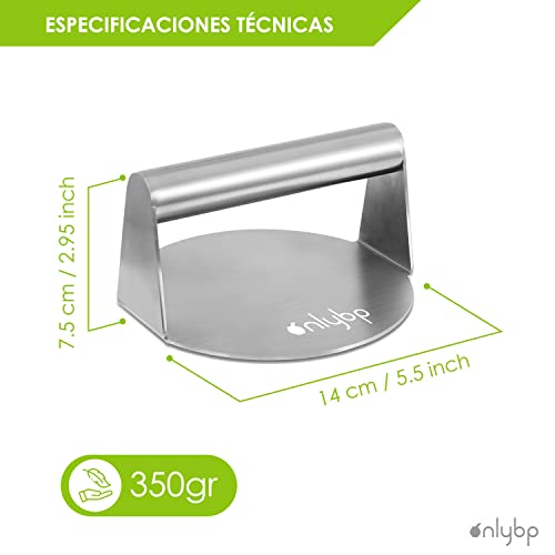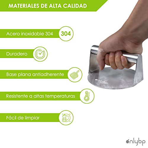 Specificaties: OnlyBP Hamburgerpers van roestvrij staal, professionele ronde pers voor Smash Burger, materiaal met antiaanbaklaag