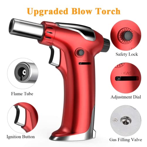 Bearbro Keukenbrander, flambeerbrander, butaan-gasbrander met veiligheidsslot voor de keuken, thuis, crème, brûlée, gebak, desserts, camping, rood