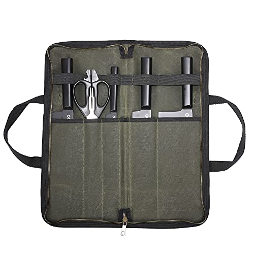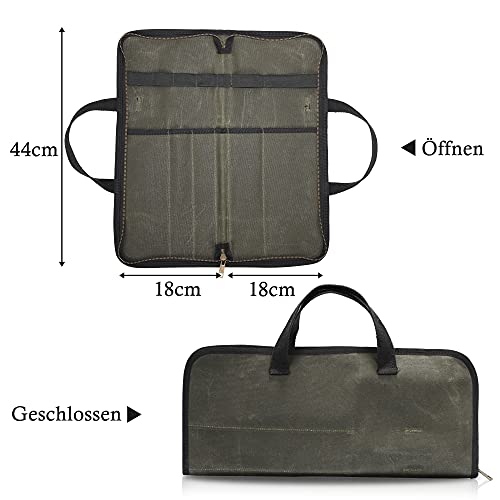 Kaaltisy Roltas voor koks, messentas voor kamperen, wandelen, multifunctionele gereedschapstas, roltas, waterdicht en gewaxt canvas, legergroen