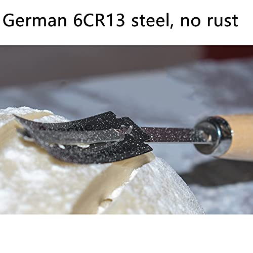 Het handvat van het broodsnijmes is gemaakt van beukenhout, dat licht en sterk is.Met een lemmet van Duits 6CR13-staal kunt u gemakkelijk verschillende patronen in het deeg snijden, waardoor uw werk exquise wordt en uw eetlust toeneemt.