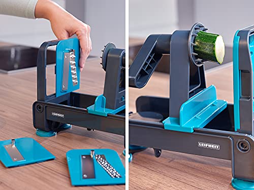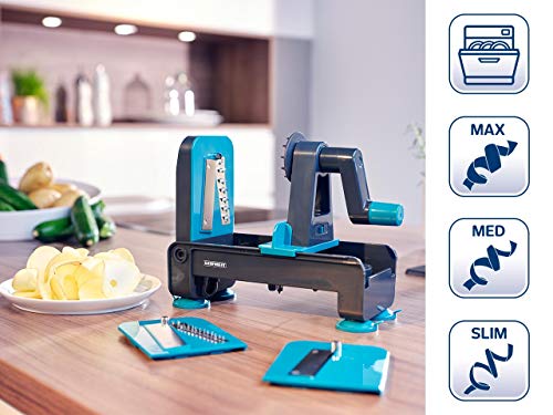 Leifheit Tafel-spiraalsnijder, courgette noedelsnijder met 3 messen voor verschillende groentepasta, ruimtebesparend inklapbaar, stabiele juliennesnijder, Zoodlemaker vaatwasmachinebestendig