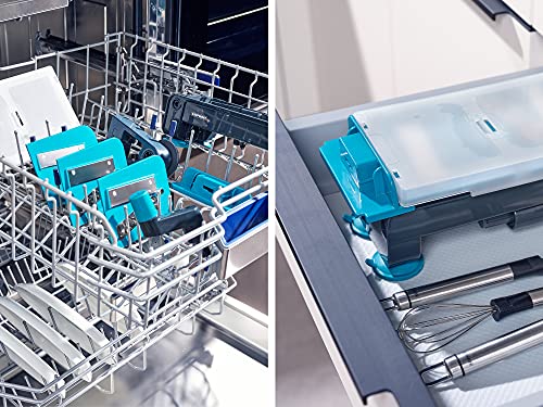 Eenvoudige reiniging: na gebruik kan de snijder eenvoudig uit elkaar worden genomen en onder stromend water met de hand of moeiteloos in de vaatwasser worden gereinigd.