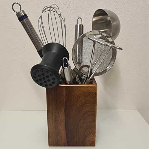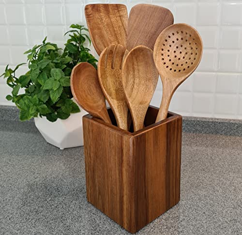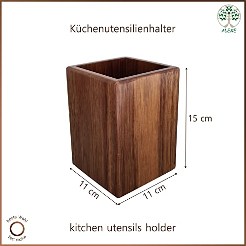 ALEXE Keukengerei houder van acaciahout, gebruiksvoorwerpen houder (hout), bestekopslag, gebruiksvoorwerpen houder, afmetingen 15 x 11 x 11 cm