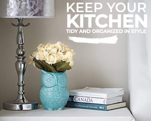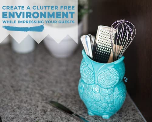 Comfify Uil Gereedschapshouder Decoratief Keramisch Kookgerei Crock & Organisator, in Mooie aqua-blauw Kleur – Gereedschapscaddy en Perfecte Keuken Keramische Décor Gift
