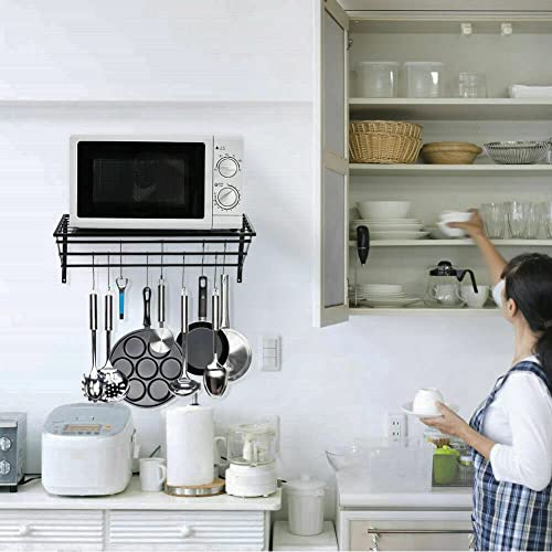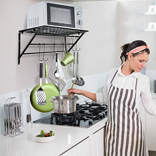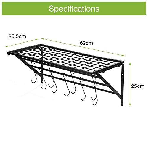 Specificaties: Estink Wandrek voor in de keuken, zwevende plank, kruidenrek met 10 S-vormige keukengereihouders, keukenrek voor potten en pannen, 62 x 25,5 x 25 cm