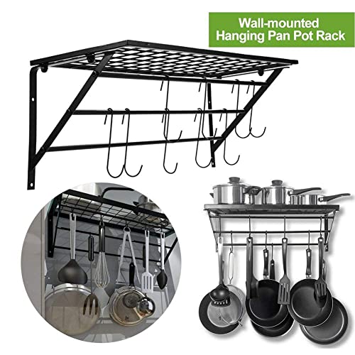 【Wandmontage pannenrek】Eenvoudige metalen pannenstandaard die speciaal is ontwikkeld voor het bewaren van een aantal potten en pannen en het netjes opbergen van dit kookgerei.